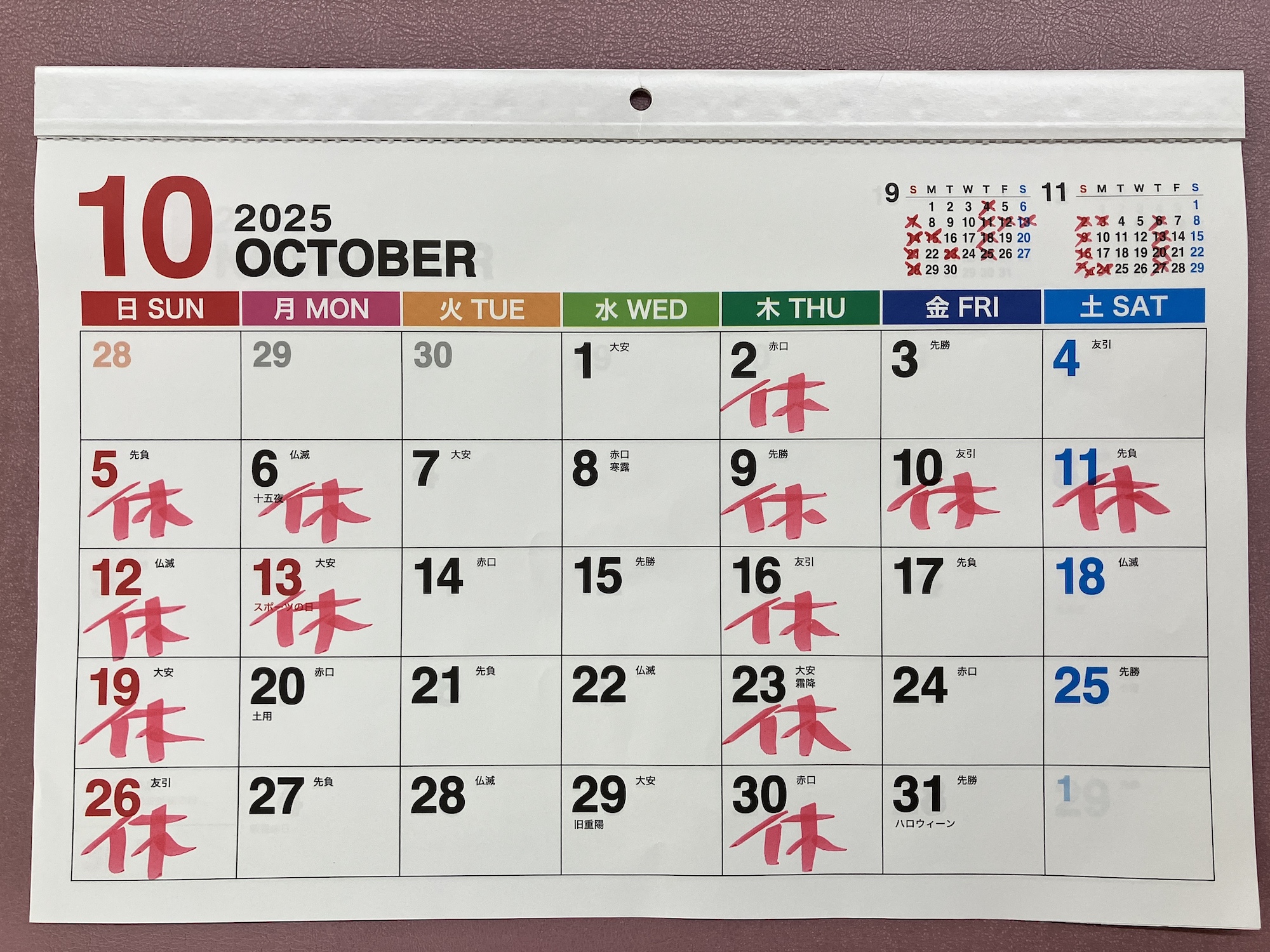10月カレンダー